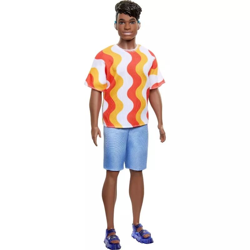 **Barbie Fashionistas Ken Doll #220** — это очаровательный Кен, который станет отличным подарком для коллекционеров и любителей кукол. Он одет в стильную оранжевую рубашку и яркие желейные туфли, что делает его образ уникальным и запоминающимся.