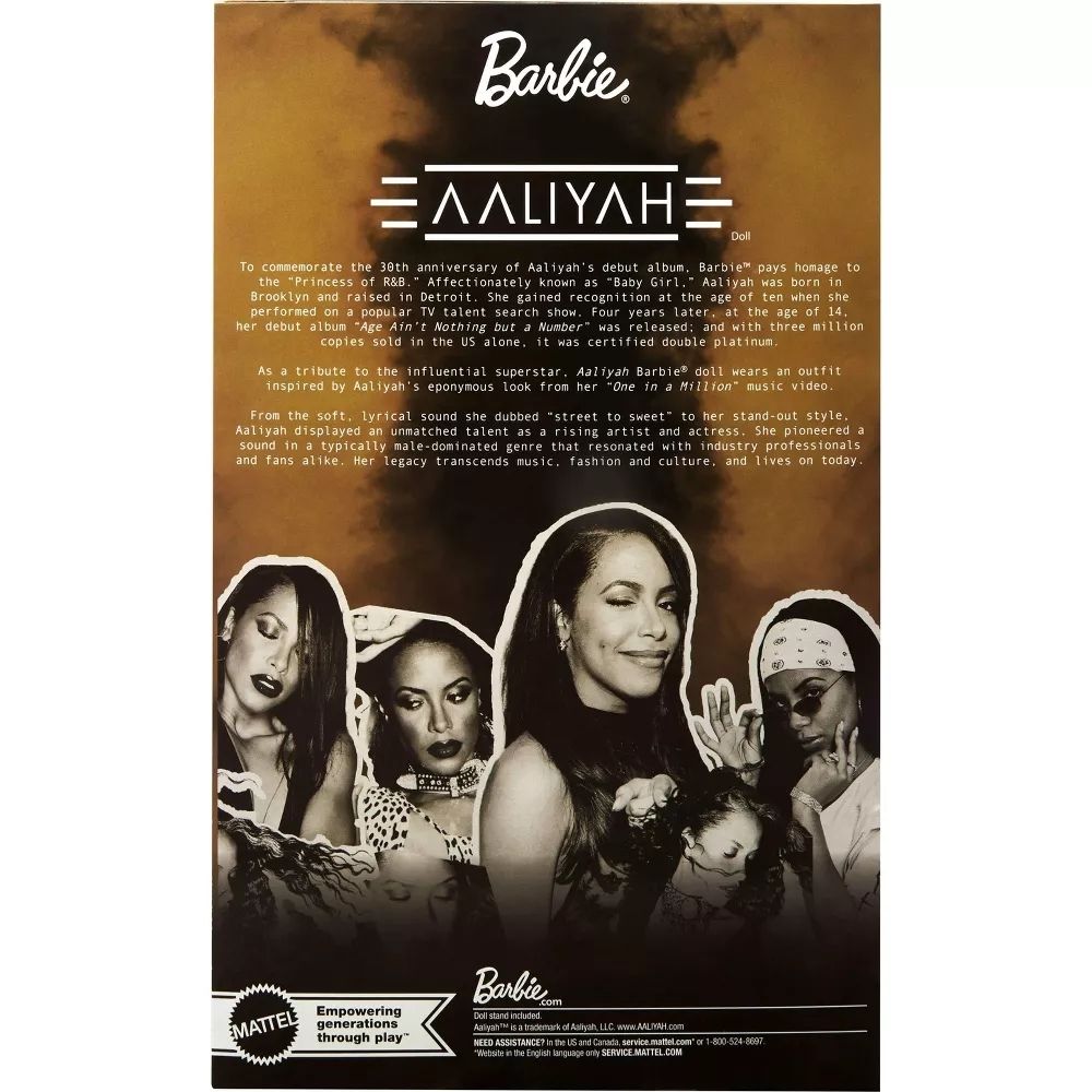 - Её наследие выходит за рамки музыки, моды и культуры и продолжается по сей день. Кукла Барби Алия отдаёт дань уважения этой влиятельной звезде, что делает её незабываемым подарком для коллекционеров и поклонников.