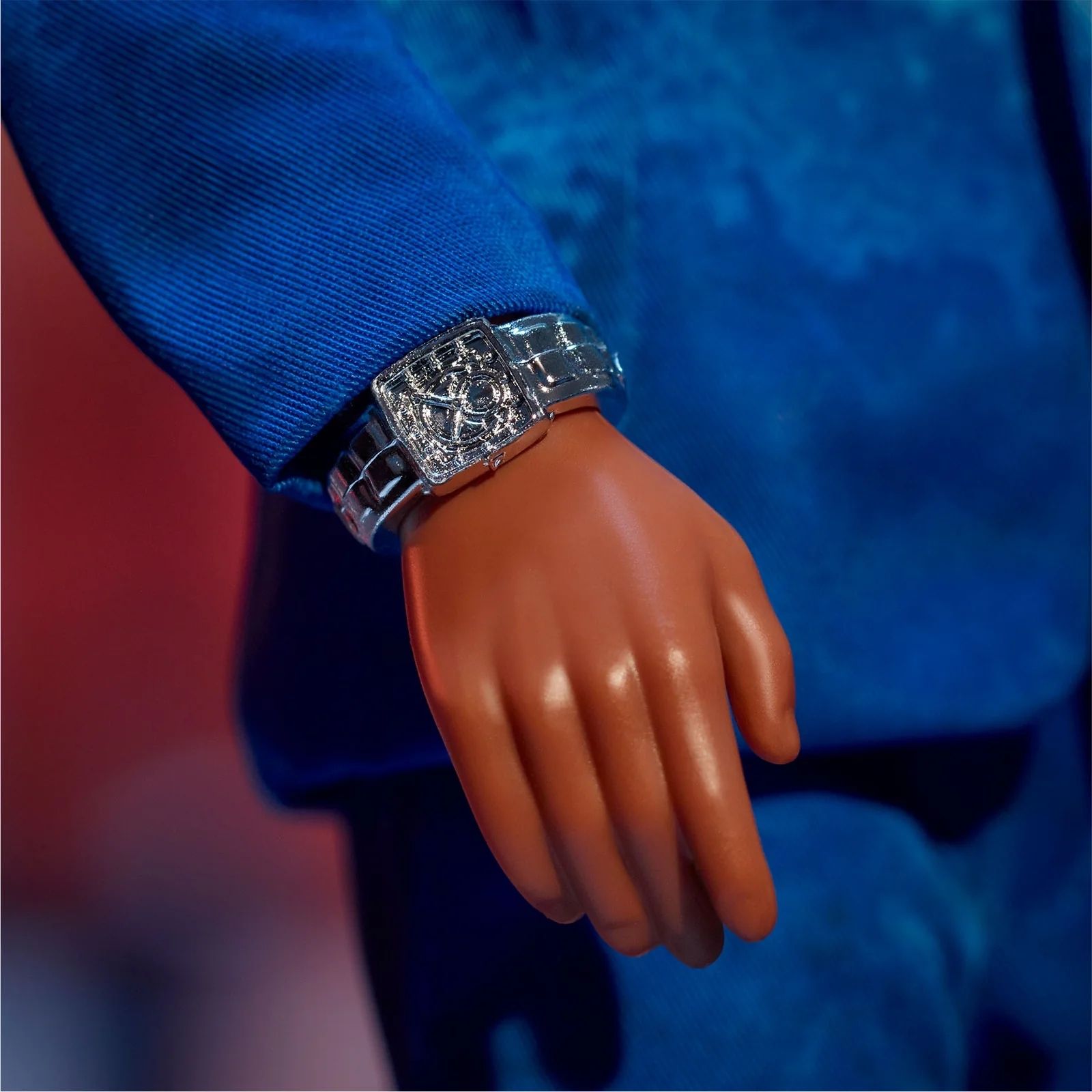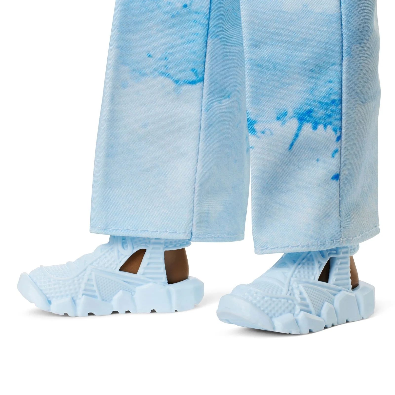 Вторая кукла из серии Ken Kouture — это воплощение стиля Кена. Его фирменный синий цвет оживает в сшитом на заказ костюме с эффектом омбре под прозрачным виниловым тренчем — супер-крутое сочетание уличной моды и высокой стиля. Белая сумка-мессенджер, ледяные голубые кроссовки и солнцезащитные очки-авиаторы доказывают, что в мире высокой моды он — больше, чем просто Кен.