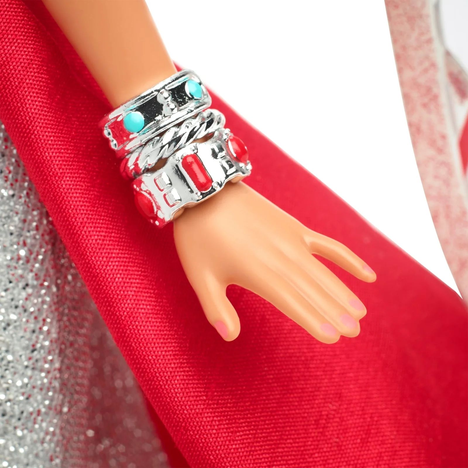 Всемирно известный дизайнер костюмов и одежды Боб Макки в очередной раз сотрудничает с Barbie для создания великолепной куклы «Рождественский ангел». Она сияет, как звездный свет, в переливающемся серебряном платье с малиновым поясом, который ниспадает на лиф и образует праздничный букет. За ней парят сверкающие крылья, а серьги-подвески и браслеты подчеркивают ее небесное сияние.