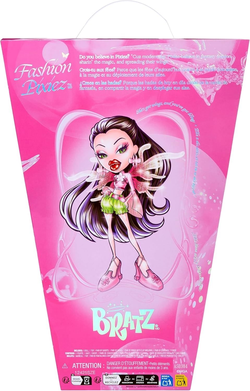 5. В КОМПЛЕКТ ВХОДИТ: 1 кукла Bratz Fashion Pixiez, 1 модный верх, 1 модный низ, 1 пара сережек, 1 пара обуви, 1 сумочка, 1 набор крыльев.