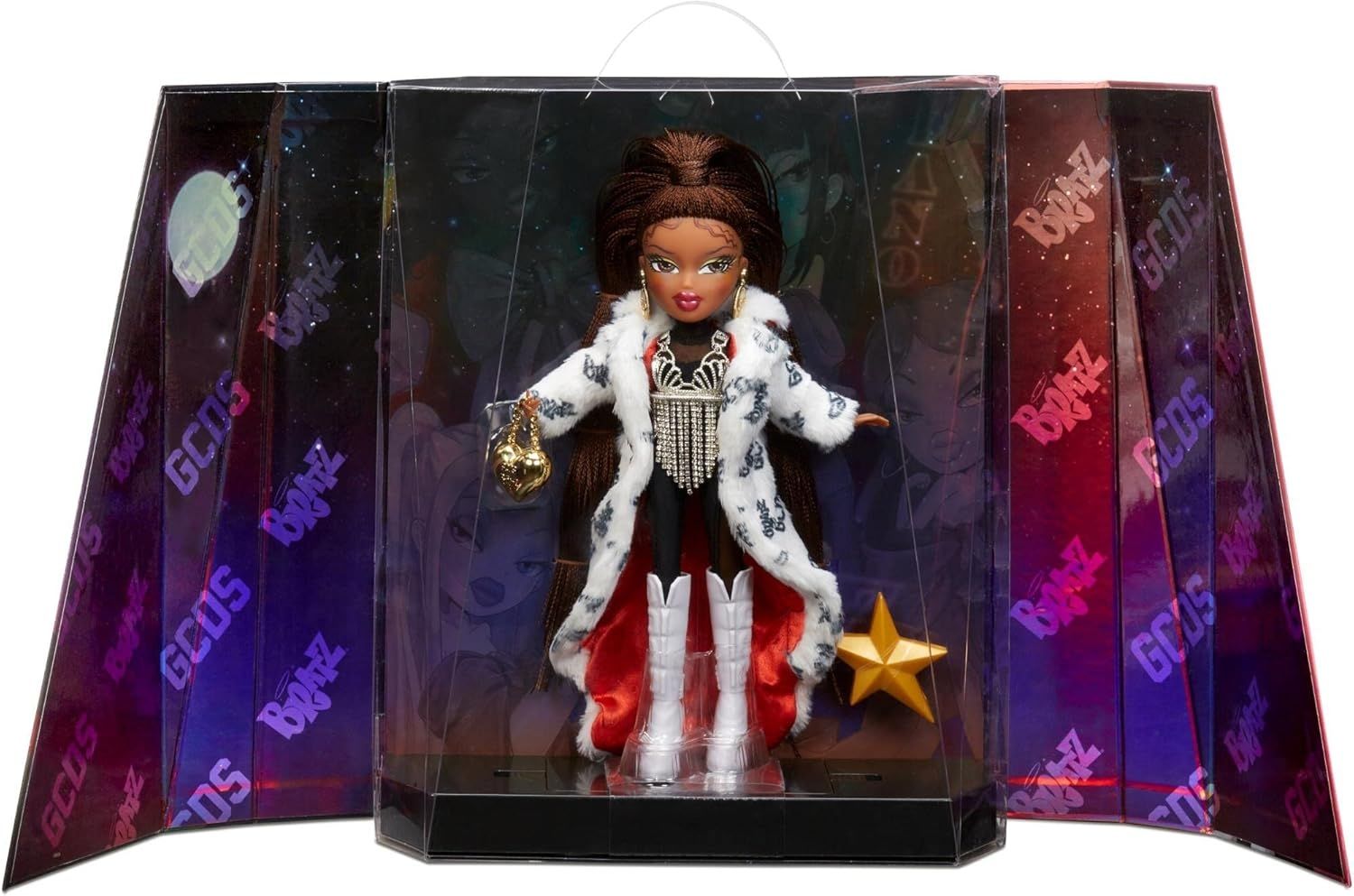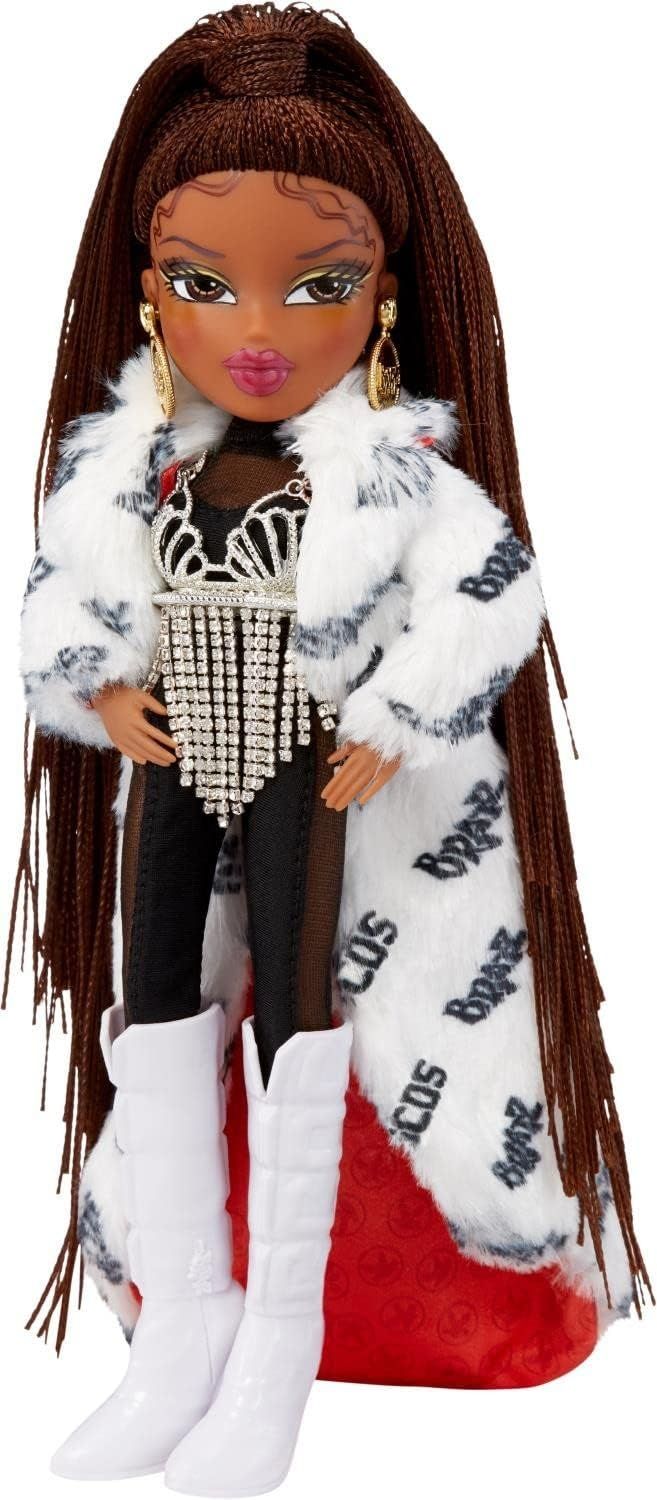 - ВКЛЮЧАЕТ: 1 дизайнерская кукла Bratz x GCDS Special Edition Sasha Fashion Doll, черное боди, платье Shell с кристаллами, шуба из искусственного меха с принтом GCDS и Bratz, белые сапоги Establish, золотая сумка Heart, золотые серьги Bratz, расческа, большая подставка с меньшей съемной платформой и сертификат подлинности. Соберите Ясмин и Сашу!