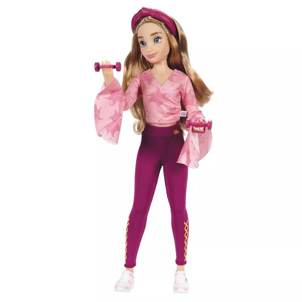 Эта кукла Disney ily 4EVER, вдохновленная Рапунцель, олицетворяет собой счастливую натуру, движимую любовью к себе. Лучше всего начать свой день с хорошей тренировки, надев розовый топ с запахом и принтом в виде цветов-капель и бордовые леггинсы.