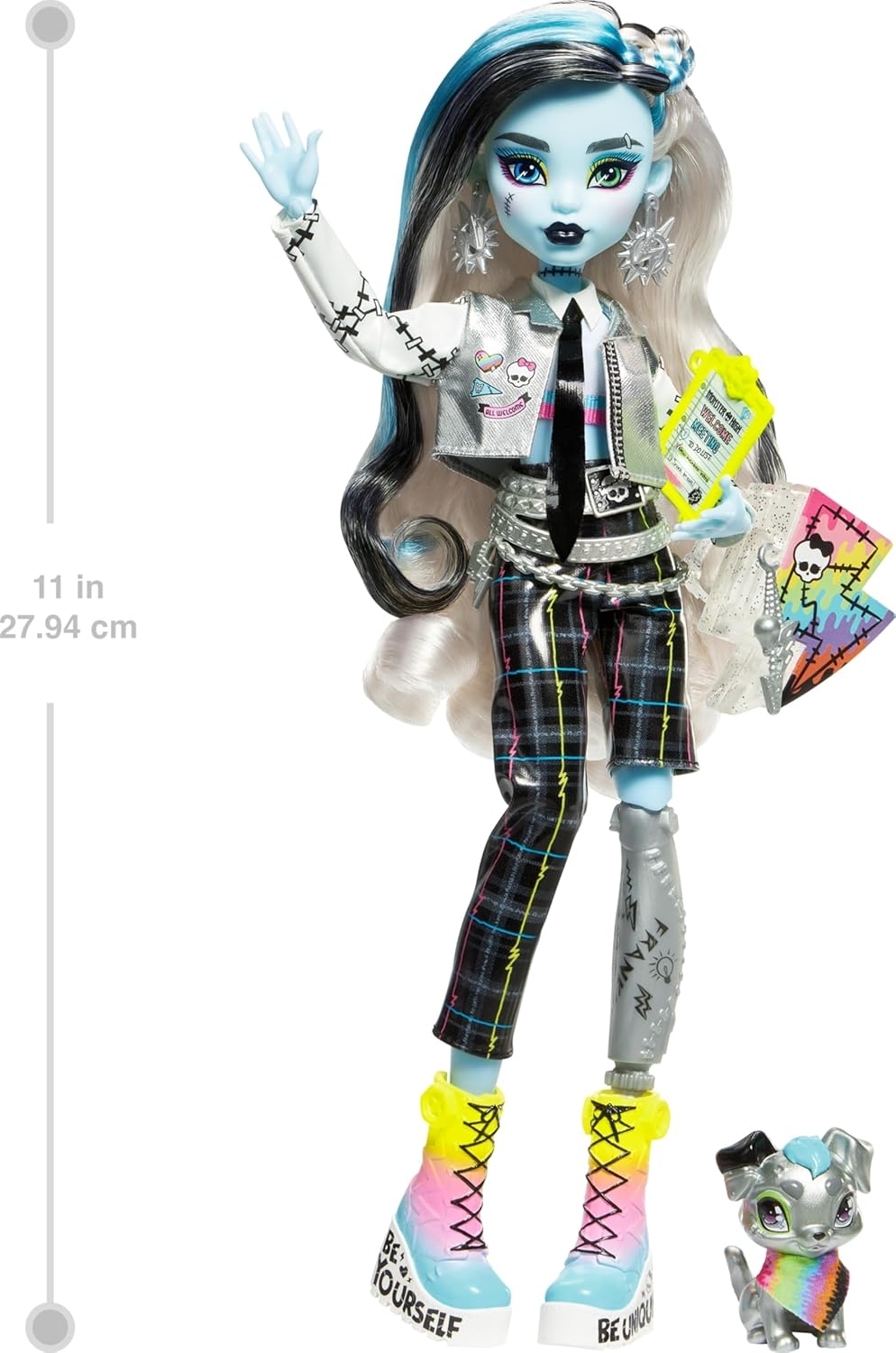 - Поддержите инклюзивность и отметьте различия с помощью этого красочного набора, в котором кукла Фрэнки Штайн выступает в роли лидера Комитета по приему в Monster High.