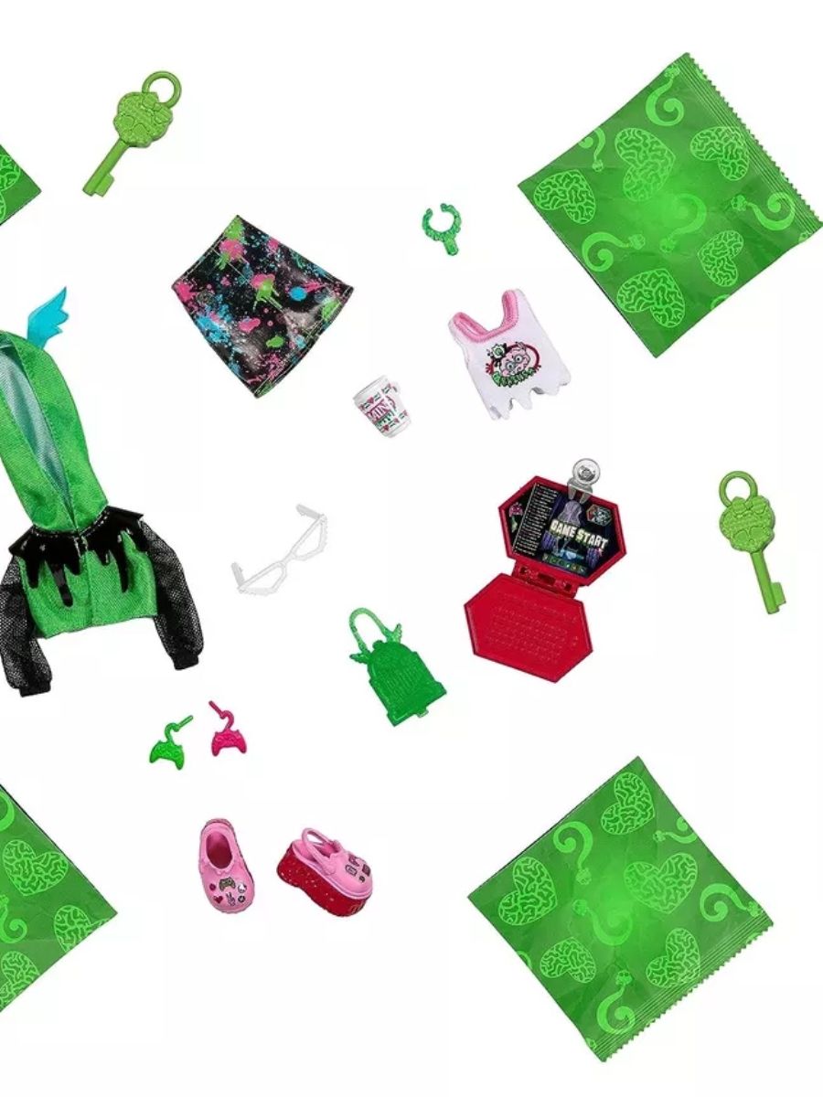 В комплекте с куклой идут дополнительные аксессуары, которые помогут создать неповторимый образ для вашей любимой ученицы Школы монстров: стильный наряд, обувь, украшения и другие предметы, необходимые для создания образа.