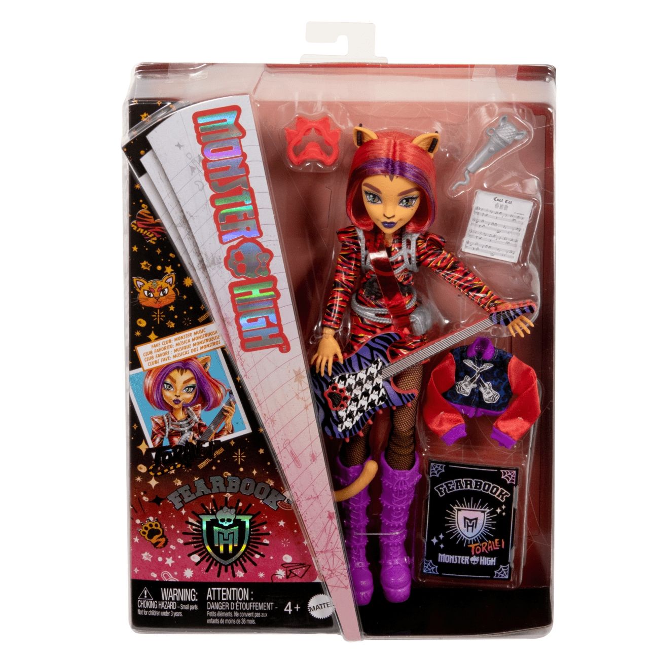 **Monster High Fearbook Toralei Fashion Doll With Varsity Jacket, Yearbook, And Music Accessories** — это коллекционная кукла из серии Monster High, которая порадует всех поклонников этого популярного бренда.