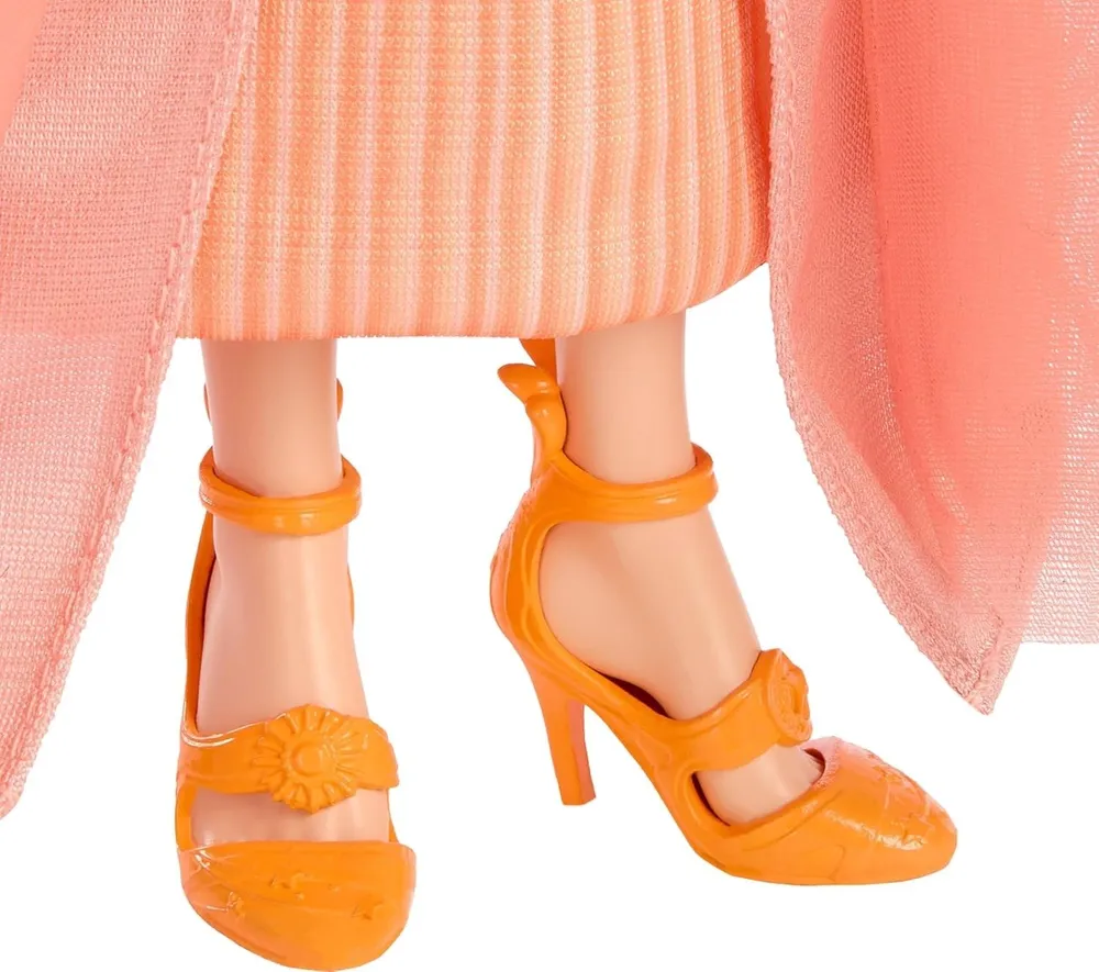 Вдохновленная фильмом, Мудрая Женщина Солнца блистает в золотом платье, дополненном ожерельем, брошью, волшебной палочкой и туфлями на каблуках, которые завершают ее великолепный образ.