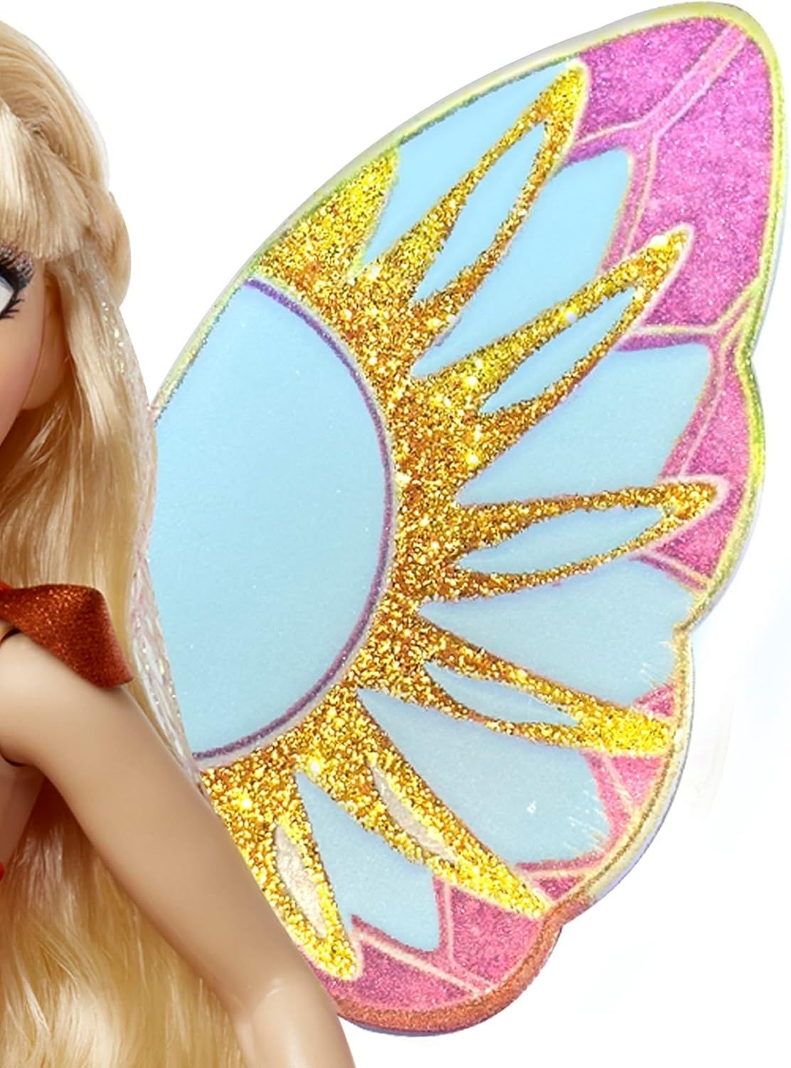 - В комплект входят ее знаменитые съемные полупрозрачные крылья с мерцающими блестками.